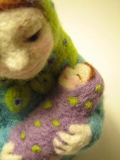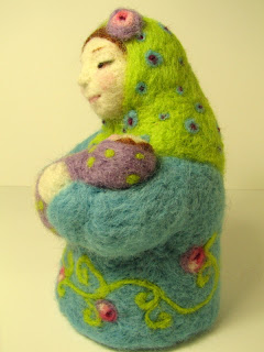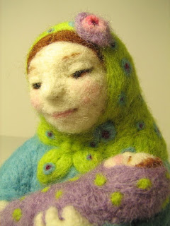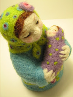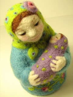 Preciosa maternidad!. Yo he intentado fieltrear con aguja pero, a parte de los pinchazos no gano para romper agujas. Pero cuando veo todo lo que puede dar de sí la lana en unas manos con don me dan ganas de darle otra oportunidad.