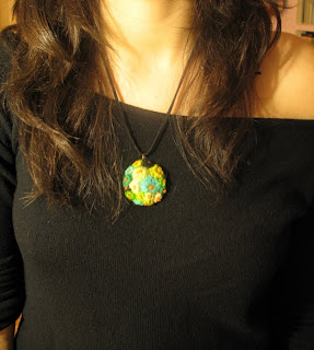 Los colgantes y broche tienen como base de arcilla polimérica, que en unas fotos se ven por detrás.
