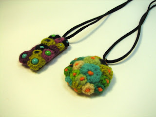 Con los elementos que veis en la siguiente foto, he hecho unos sencillos colgantes, pulseras, broches, todo ello de estilo Gustav Klimt. Mediante la unión de pequeños redondeles de ganchillo cosidos.