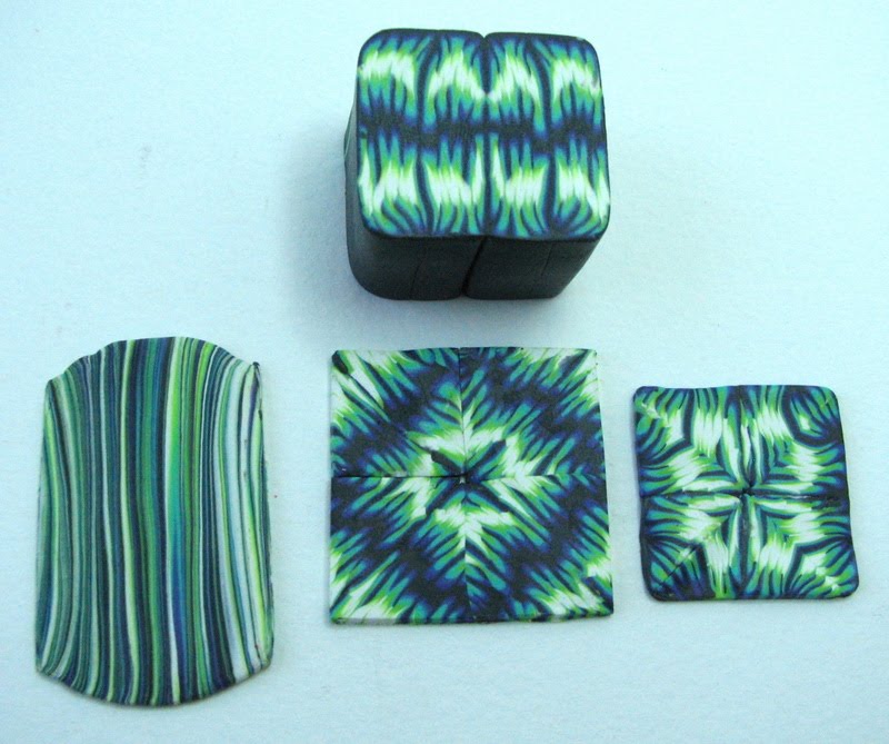 Realizando la murrina caleidoscopio, me han sobrado dos triángulos y lo he empleado en hacer una cenefa para futuras creaciones.