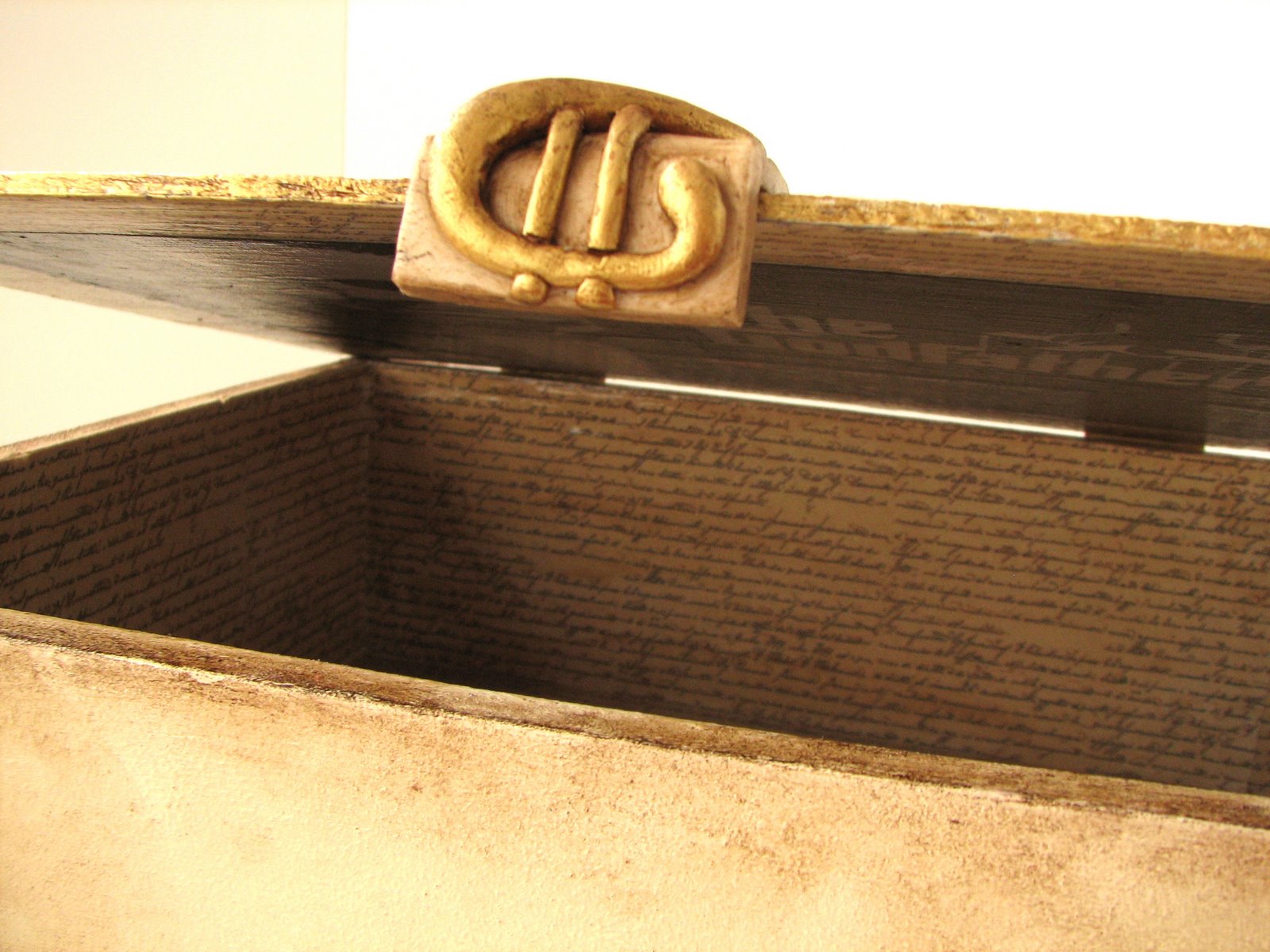 El interior de la caja se forró de papel con escritura antigua.