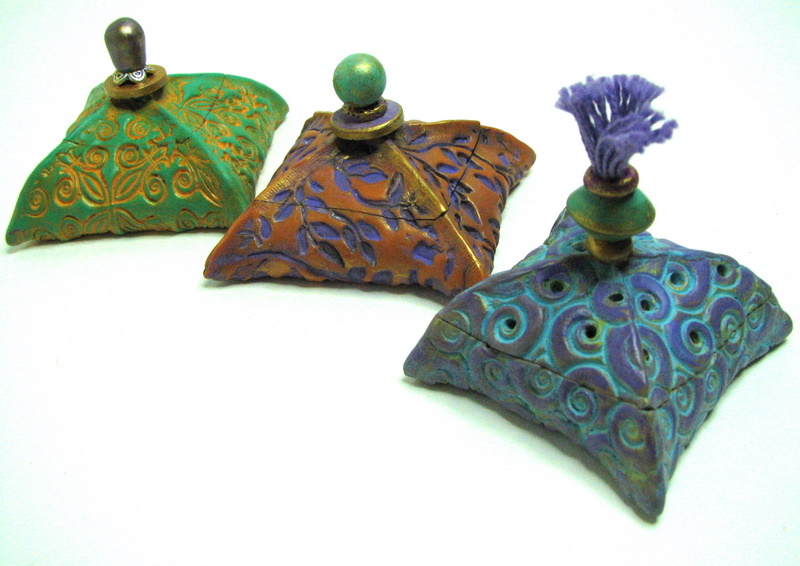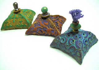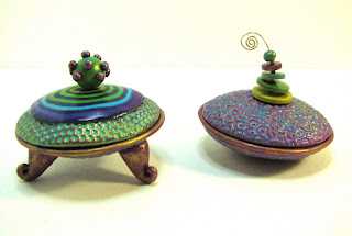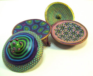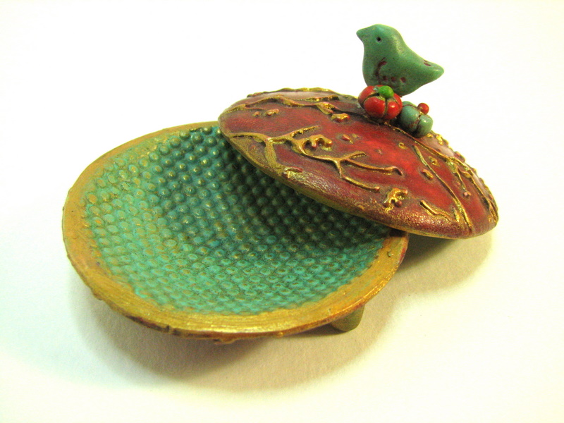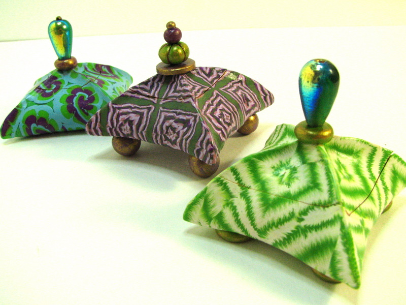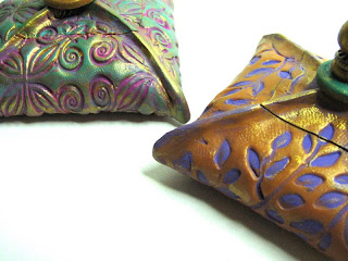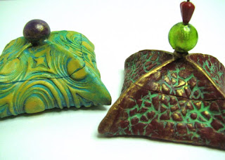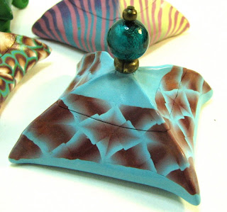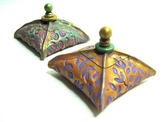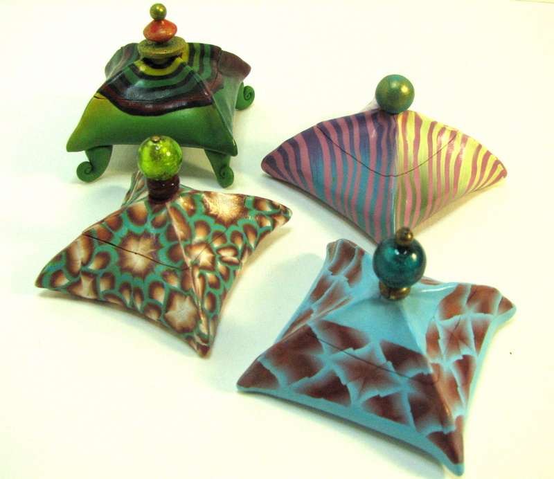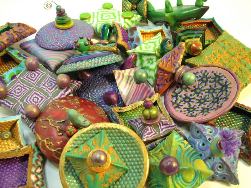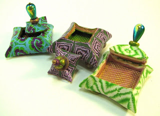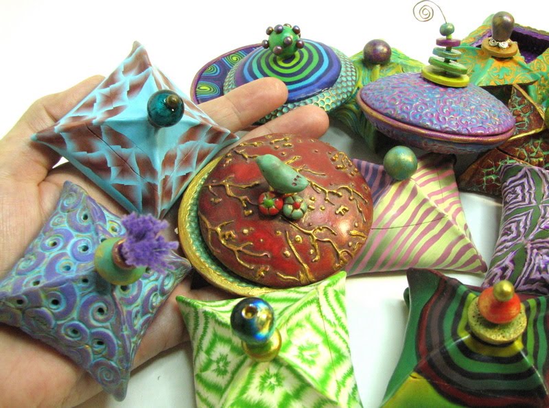 He estado realizando minicajitas de arcilla polimérica de variados colores, al estilo de Maureen Thomas Designs, pero alterandolos a mi imaginación.