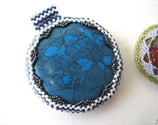 El de la izquierda es una imitación turquesa, es una belleza¡, también lleva cosidas bolitas Miyuki alrededor.