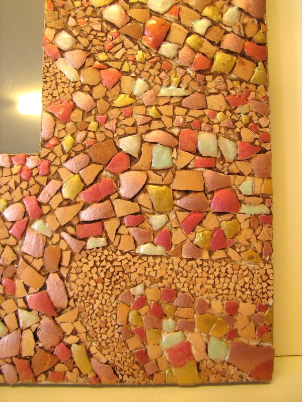 Aldahara ha realizado éste marco de espejo, es un mosaico de cáscaras de huevo.