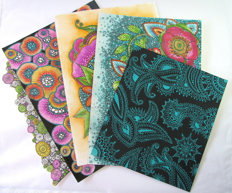 Estos dibujos los he realizado a mano y son una mezcla de tres estilos zentangle, paisley y cachemira. Usando rotuladores acuarelables , rotulador gel, rotulador normal color negro y pinturas acrílicas. Estos dibujos se usan para transferir sobre arcilla, con la técnica de collage de celo transparente, para forrar cajitas,....