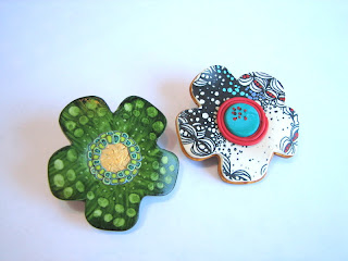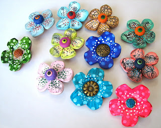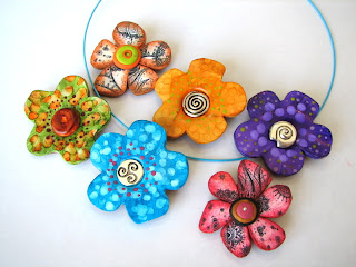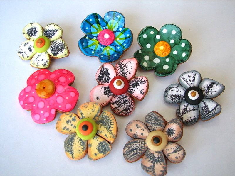 ¡Ya ha llegado la primavera! Y no encontrareis dos flores iguales, cada alumna ha puesto su sello personal, eligiendo bonitos y alegres colores. Están hechos de arcilla, usando variados elementos en su composición, como pequeños clavitos de colores y fornituras variadas de metal.
