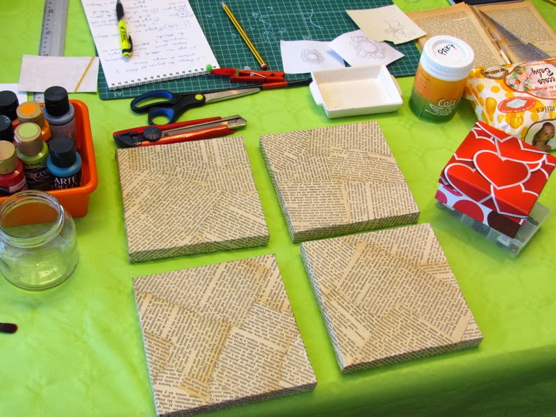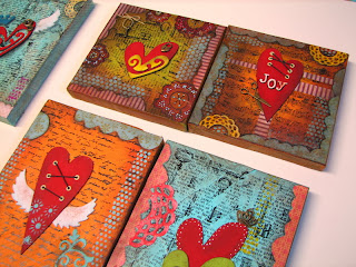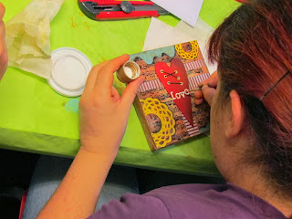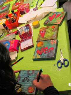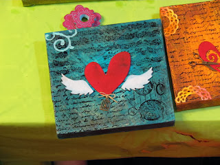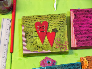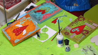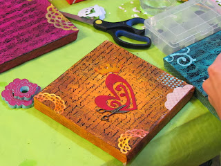 Ayer sábado se hizo un curso intensivo de Scrap de duración ocho horas, para aprender a decorar con técnicas variadas cuatro pequeños lienzos.