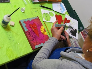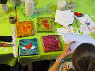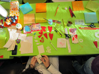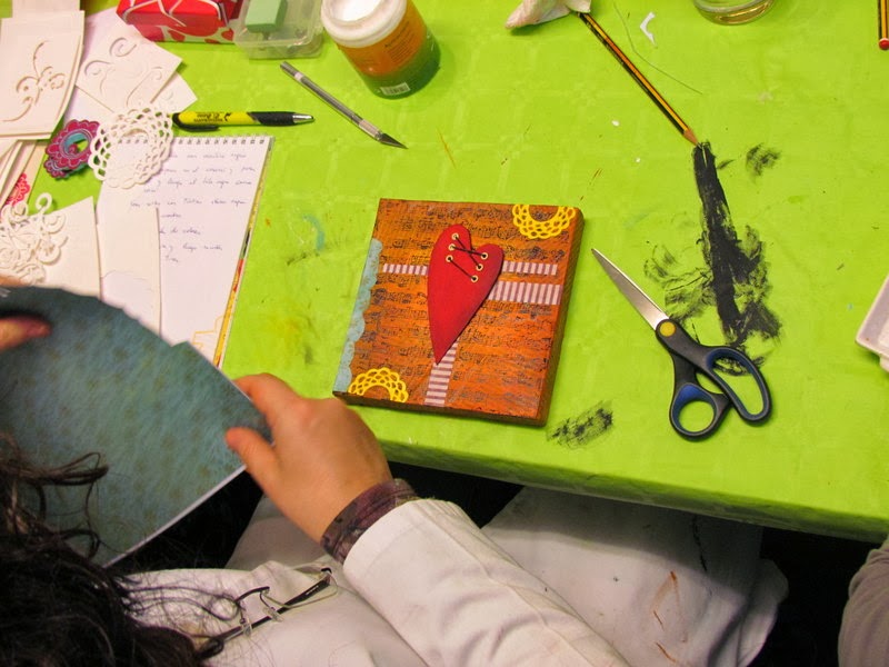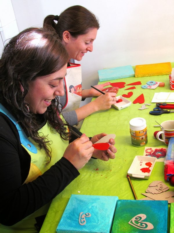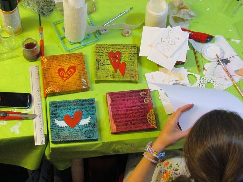 ¡Lo pasamos bomba! Estoy alucinada de las maravillas que han hecho, cada una ha realizado su propia composición, con corazones grandes, pequeños, delgados, gruesos, ....y eligiendo ellas mismas los colores.