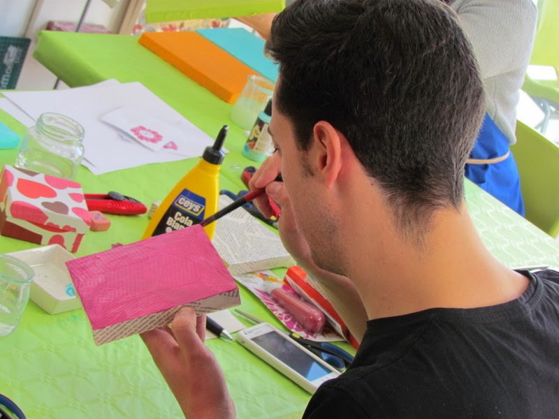 Durante todo el día, a medida que iban componiendo sus cuadros las personas quedaban contentas con los buenos resultados. Ya que es un trabajo que parte desde una serie de lienzos en blanco sin nada, y cada una va poniendo cada elemento decorativo, a su gusto, y en el color que quiera, por lo que al llegar al final ven sus propias obras personalizadas. ¡Bravo! por todas vosotras y por Rubén.