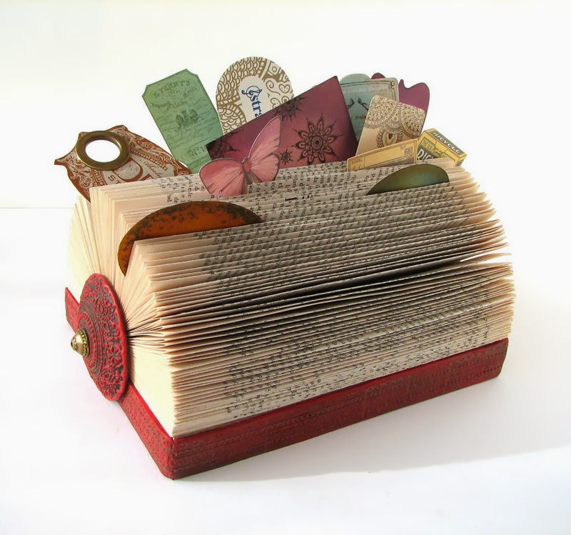 La base está hecho de cartón y arcilla polimérica, en los laterales he puesto unas rodelas también de arcilla polimérica. Por cierto el libro es un tratado de filosofía y psicología, a ver si con esto me "trae" nuevas ideas intuitivas je, je, ...lo tengo puesto en mi estudio de trabajo je, je,..