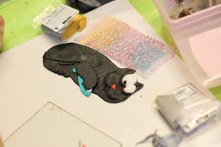 Estamos en una clase de mi taller, aprendiendo la técnica de arcilla polimérica llamada Conciencia marina.