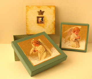 Detalle de la tapa de la cajita, donde he pegado rocallas de color dorado, con cola blanca.