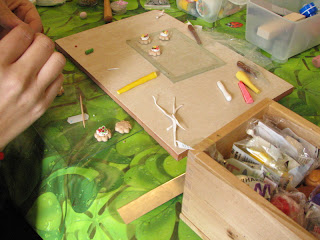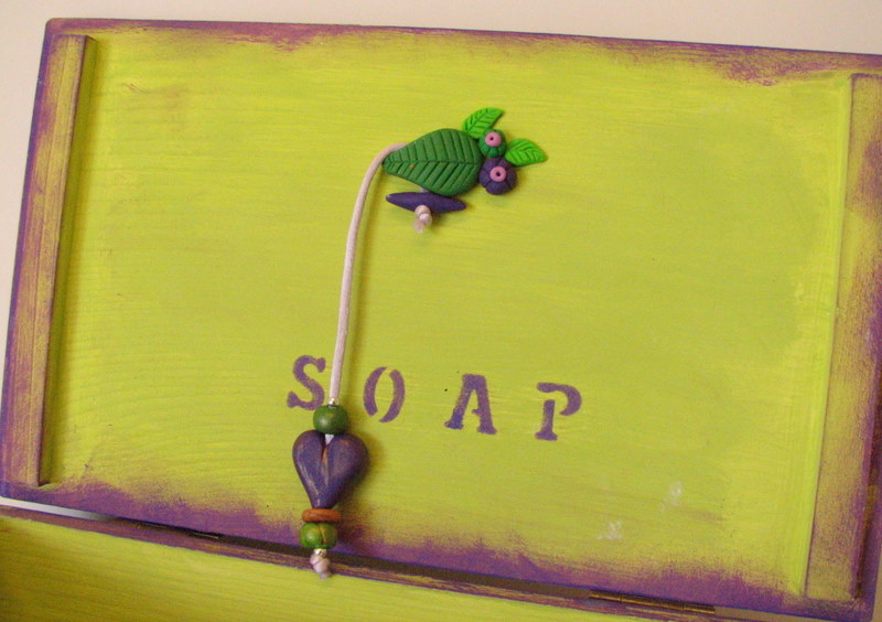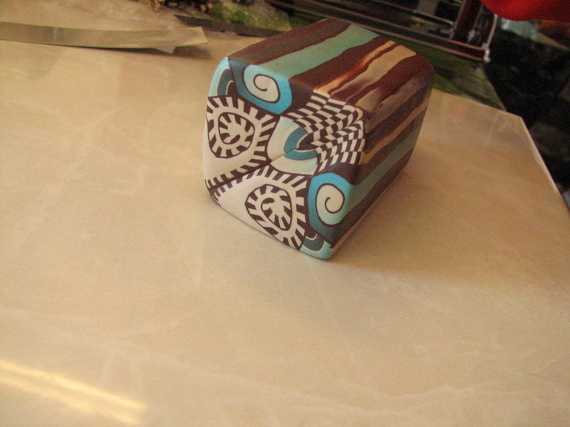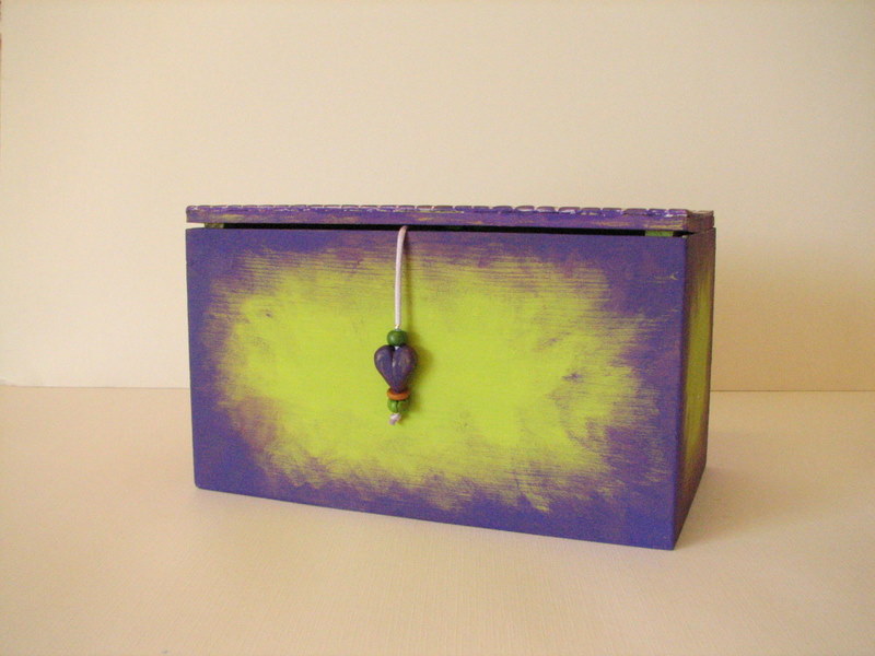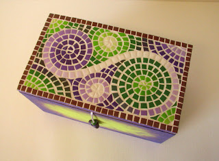 Es una caja de madera, forrada la parte superior de mosaico de arcilla polimérica.