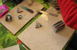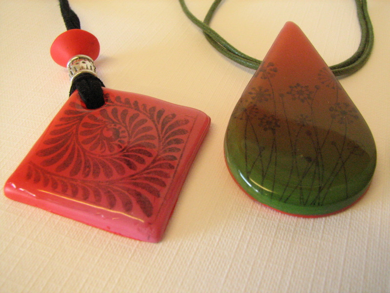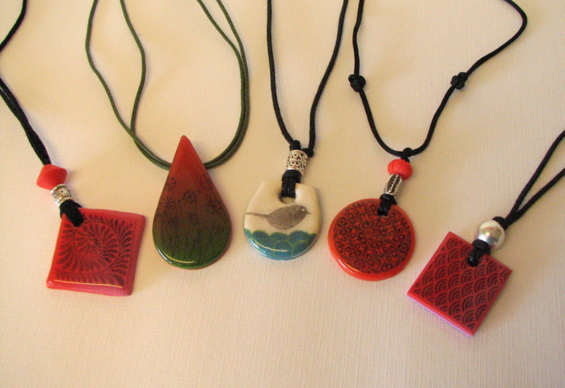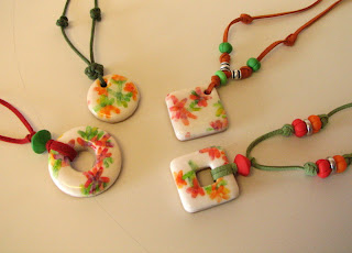 Otros colgantes de arcilla realizadas con la técnica de transferencia y uso de embossing.