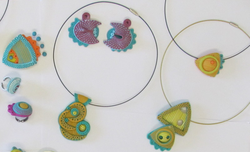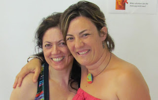 Patricia y Nuria, mostrando los hermosos colgantes. Simpáticas personas.