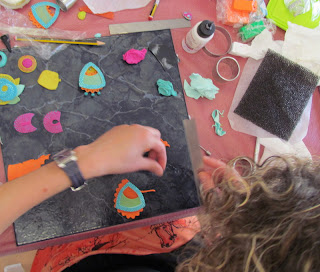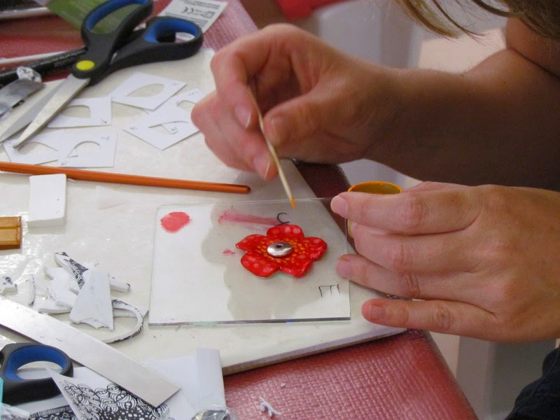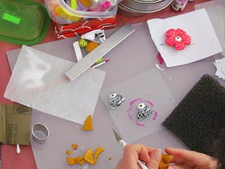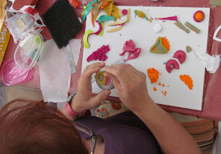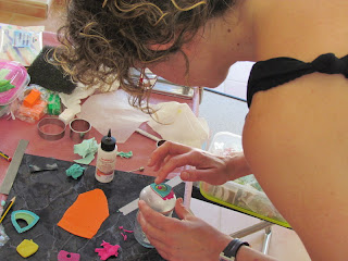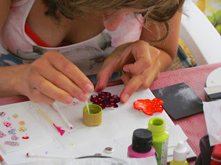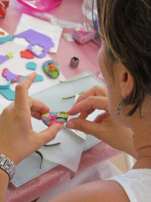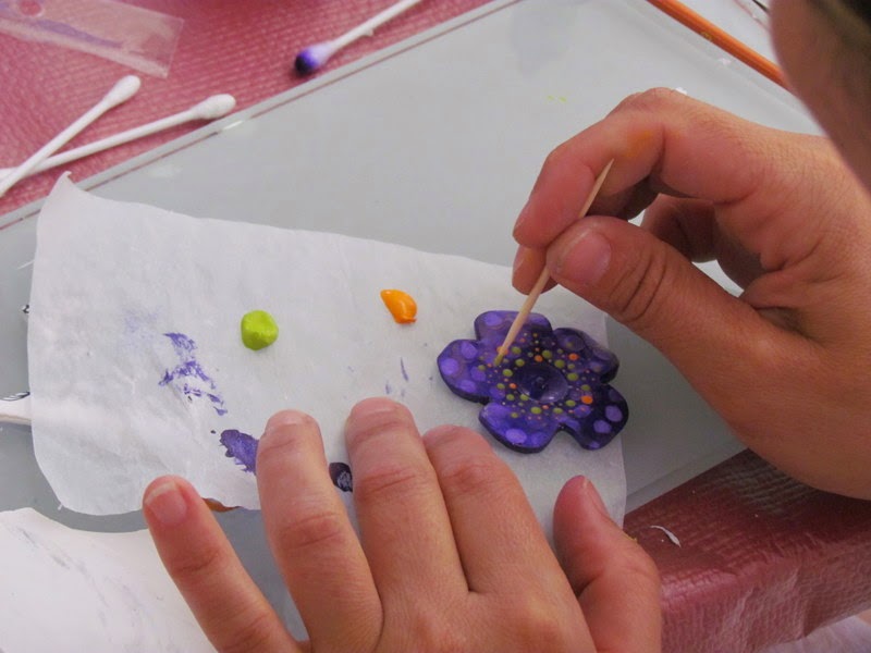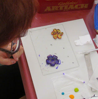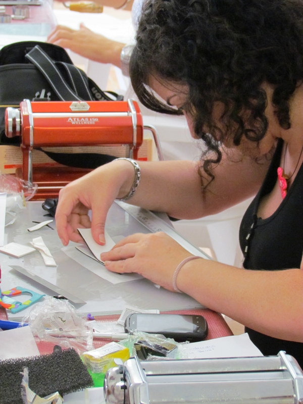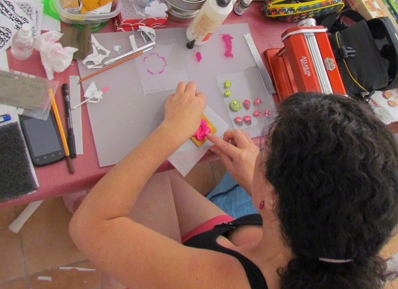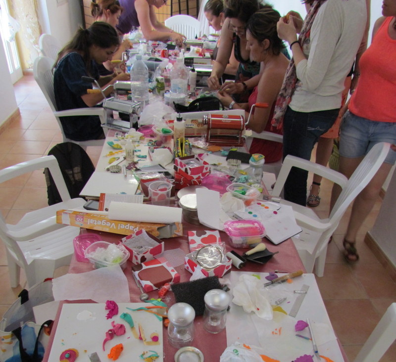 Como veréis en las fotos, concentradas cada una en sus creaciones. Incluso algunas lo terminaron pronto y se pusieron los colgantes.