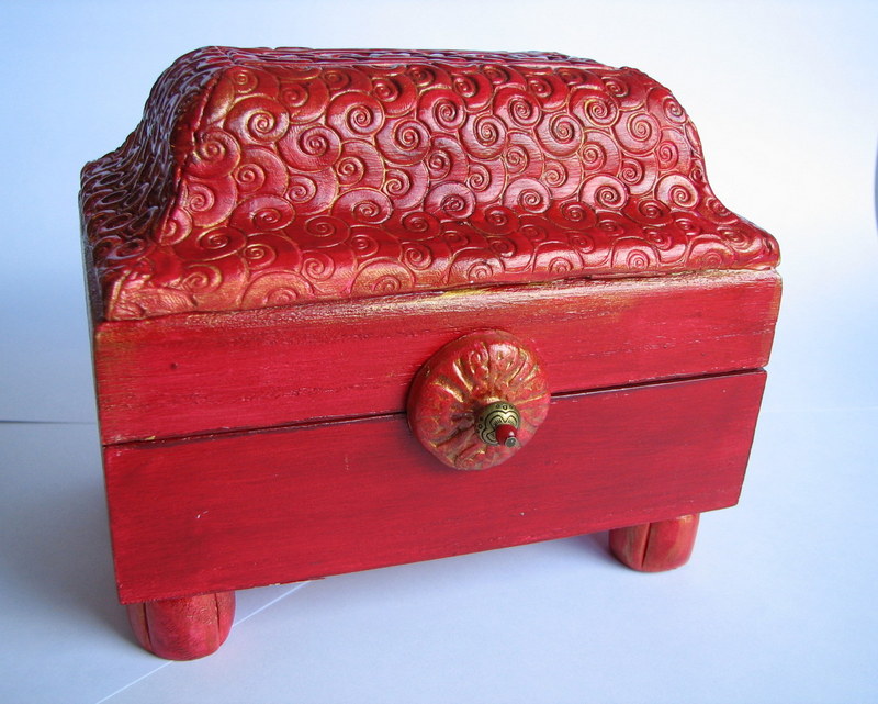 Mayte, le ha costado realizar la caja con su decorativa tapa, pero ha merecido la pena, el resultado final es fantástico, el rojo es uno de mis preferidos.