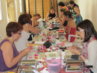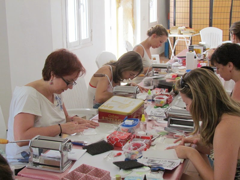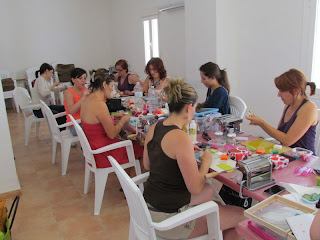 Gracias a Elena (en el centro de la foto) que organizó el encuentro, facilitando el local, los bollos, las mesas, y cualquier cosa necesaria para llevar a buen desarrollo el curso. Junto a ella está Nuria que también ayudó en el evento creativo. Quiero agradecer enormemente a las dos, son unas personas encantadores!