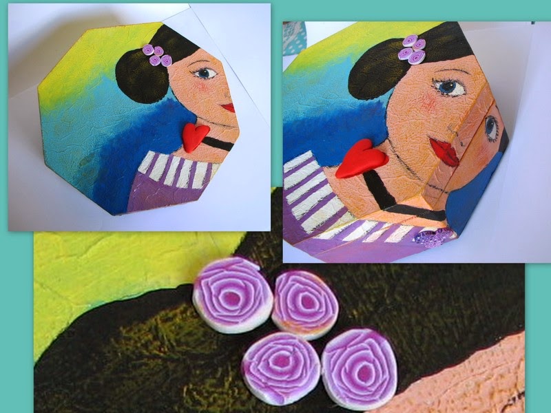 En las clases de Scrap, han realizado éstas fabulosas cajas combinando la madera y la arcilla polimérica. A las que también las felicito.