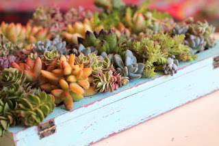 La caja la hemos elaborado para que tenga un bonito color decapado, y Ana Dones nos ha traído un montón de plantas suculentas diferentes, abono, ... para rellenar el hueco de la caja. Ella nos ha dado la buena idea de las plantas y de como realizar paso a paso, es una persona encantadora, con mucha vitalidad.